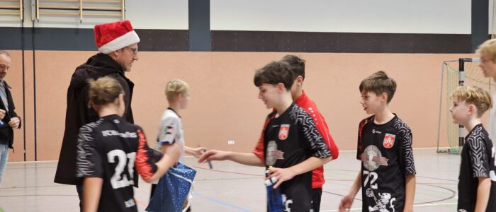Schon zweimal haben die D-Jungs vom FC Hennef 05 gegen den Tabellenletzten gespielt, zweimal haushoch gewonnen und zweimal hat der Gegner seine Mannschaft danach abgemeldet. Am Samstag ging es wieder gegen den aktuellen Tabellenletzen: HSG Siebengebirge. Die jungen Löwen legten mit ihren neuen Trikots in schwarz und rot auch gleich los wie die Feuerwehr. Schnell stand es 7:2 für unsere Heimmannschaft. Die HSG ließ in der Verteidigung große Lücken, mutig gingen die Jungs durch und warfen Tor um Tor. Doch der Tabellenletzte gab nicht auf. Vorallem über außen gelangen immer wieder Durchbrüche, so dass der Abstand maximal bei fünf Toren blieb. Halbzeit: 15:11.